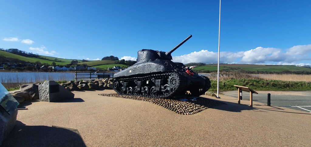 Our next stops were ones to be ticked off Steve’s bucket list. He is an avid reader and has for many years read alot about D-Day so had a long list of places to visit on his wish list. We made our way north to Sainte Mere- Eglise a small town where the American Airbourne Divisions parachuted in, landing in the early morning of 6th June 1944. The Airbourne Museum is fascinating to visit and very informative, the town has an abundance of WW2 memorabilia shops and themed cafes. The church has a reconstruction of the paratrooper John Steele hanging from the spire where his parachute had got caught, he had then pretended to be dead for several hours before he was finally cut down and captured by the Germans.