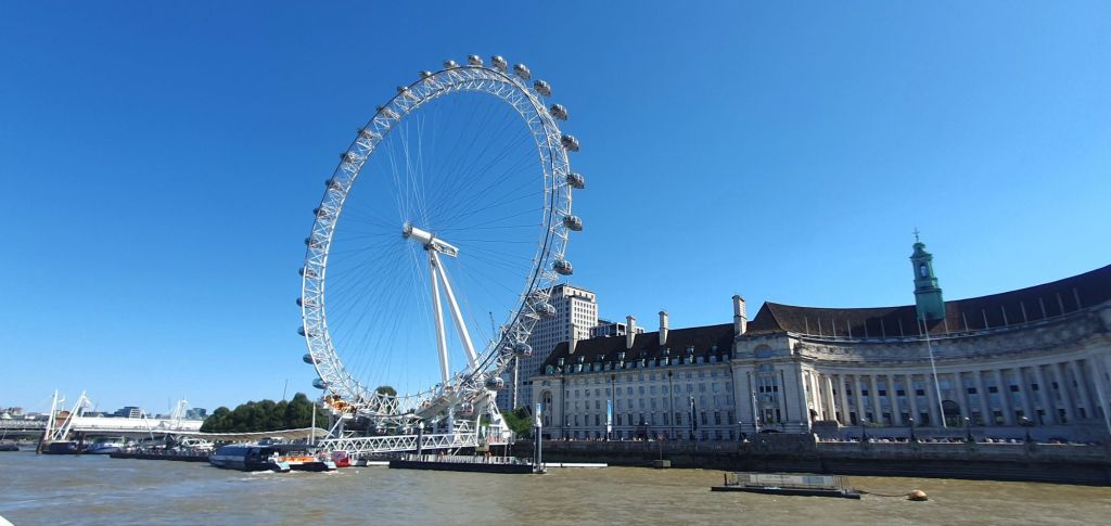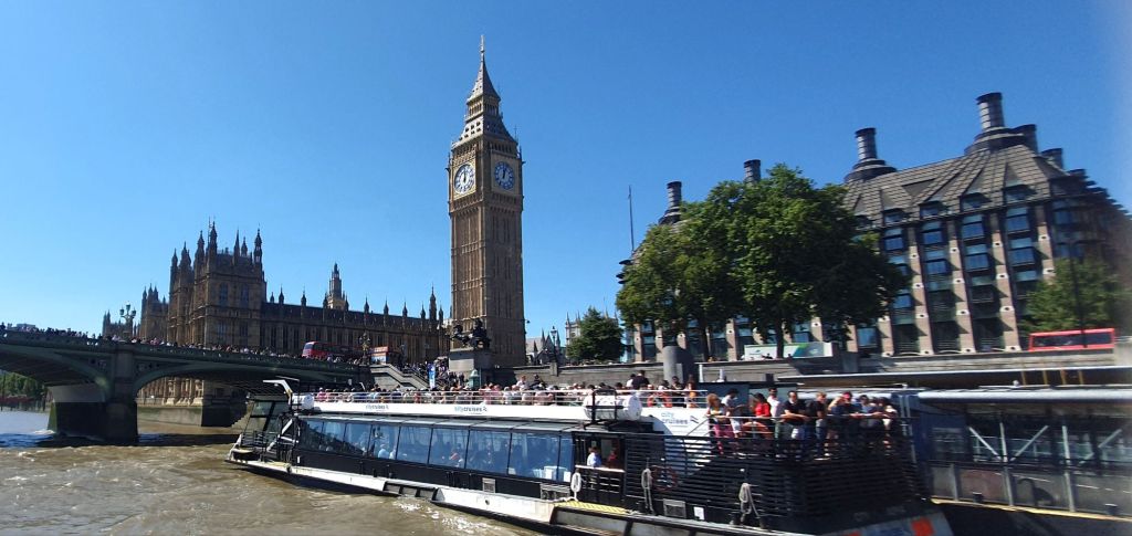 On deciding to go for a gentle activity for Sunday we booked a river cruise from Westminster to Greenwich. Hopping once again on the Elizabeth Line, changing at Canary Wharf to the Jubilee Line we arrived at Westminster Pier to board the Thames River Sightseeing cruise open topped boat. We got prime seats in the sunshine on the top deck and settled in for an hours view of London from a very different perspective.